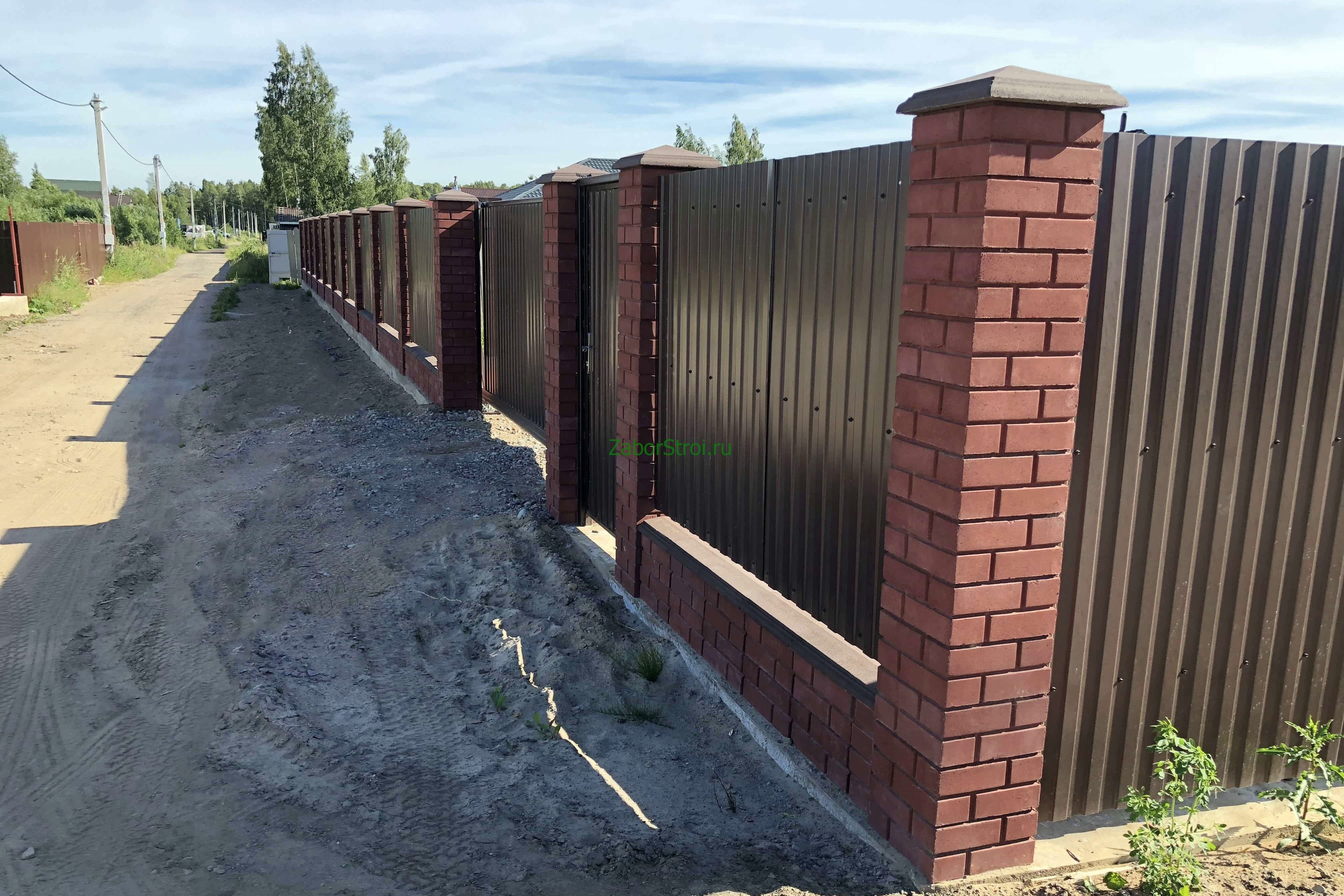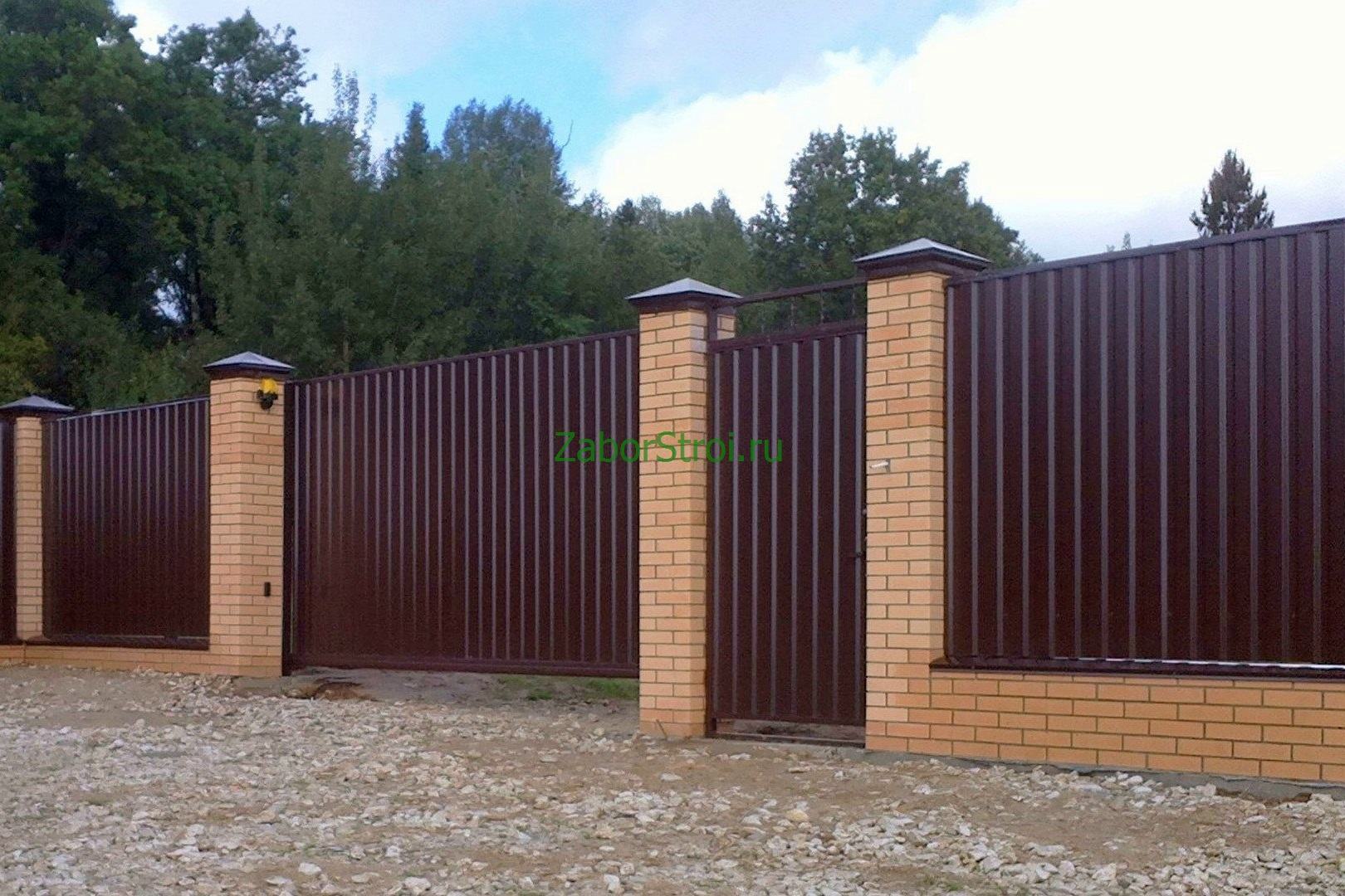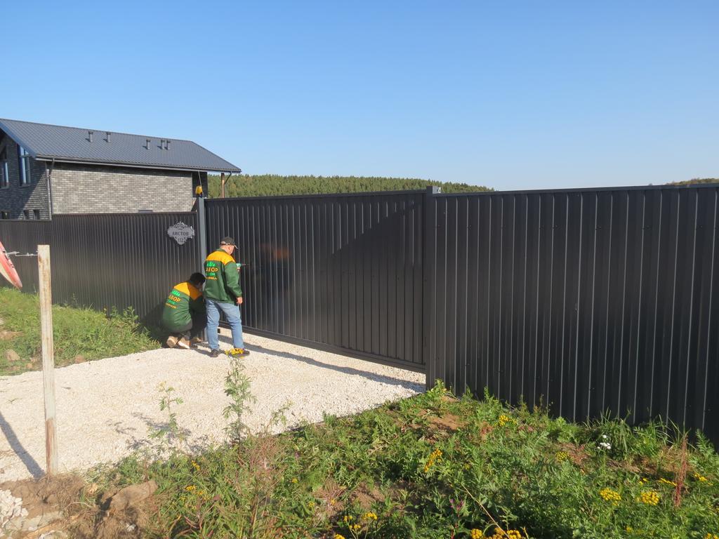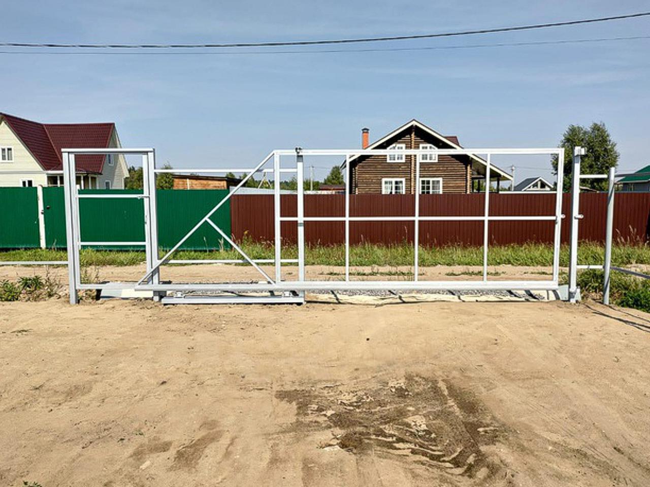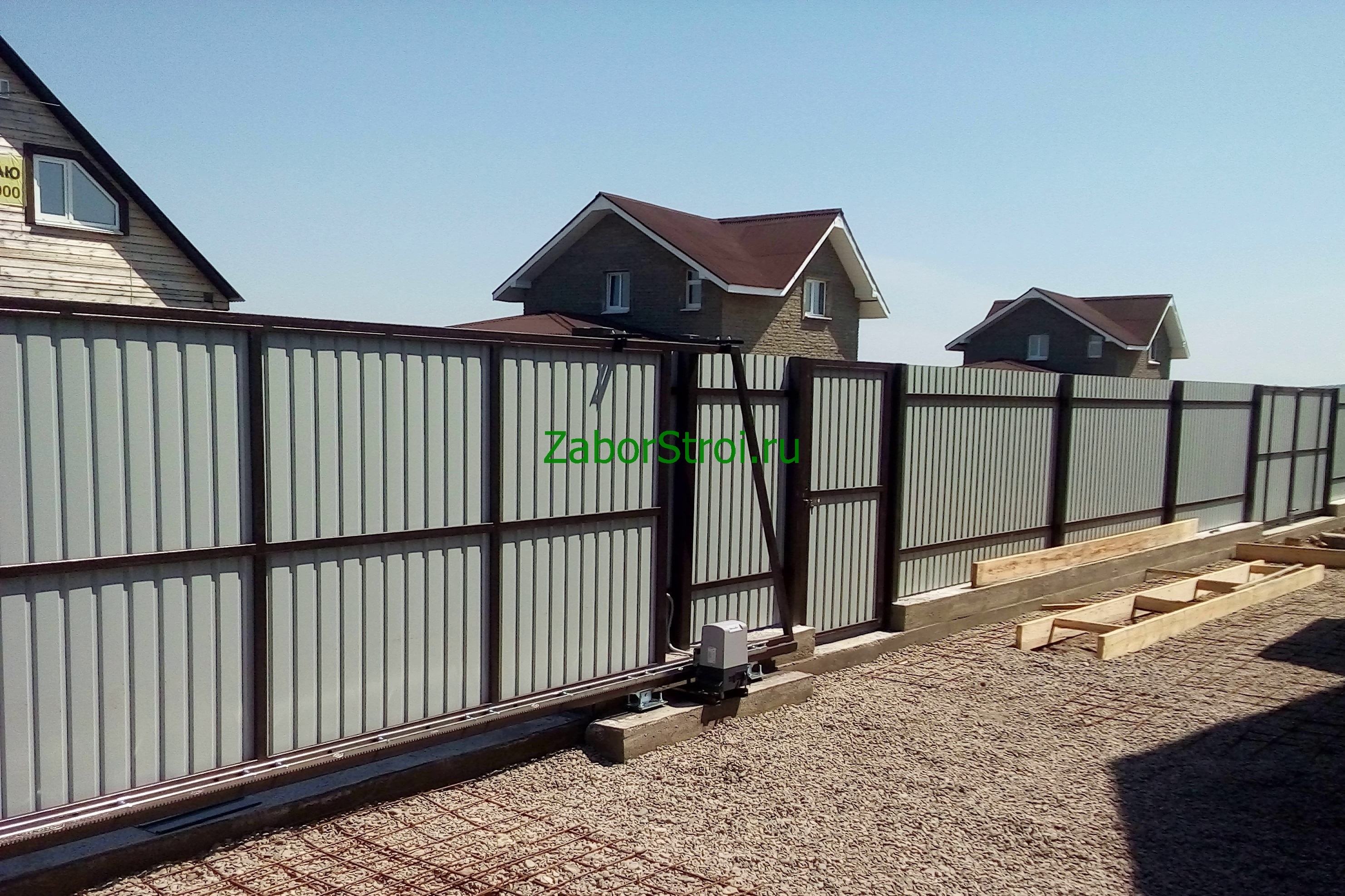 Откатные ворота из профнастила на винтовых сваях (цена на бетонном основании +20000р)